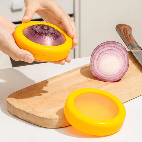 Simply cover and twist to lock in freshness, making it convenient to store lemons, avocados, tomatoes, and onions separately.