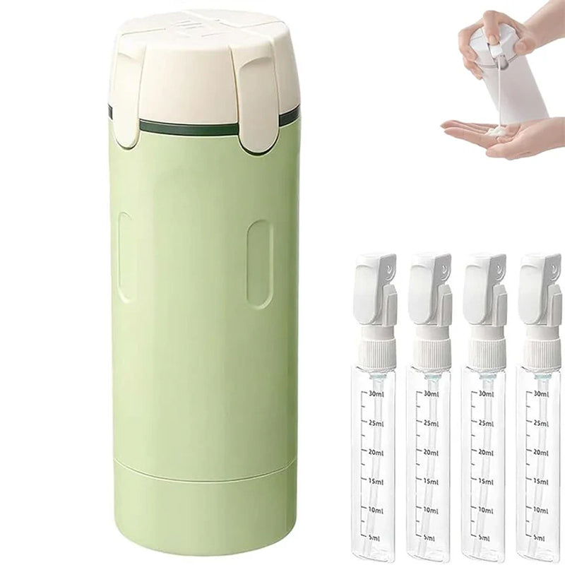 The ultimate luggage hack! This sleek dispenser holds four 30ml refillable bottles for your shampoo, lotions, and serums all in one place. Shrink your toiletry bag and travel like a pro.